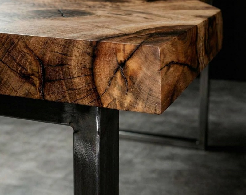 Цветовая гамма ореховой древесины поражает разнообразием. Текстура выразительная, с волнообразными узорами и заметным контрастом между годичными слоями. Мебель из ореха прекрасно смотрится как в классическом исполнении, так и в современных минималистичных формах, где акцент делается на природной красоте материала. Благодаря своей устойчивости к короблению, орех подходит для изготовления крупногабаритных предметов, в том числе массивных столов.