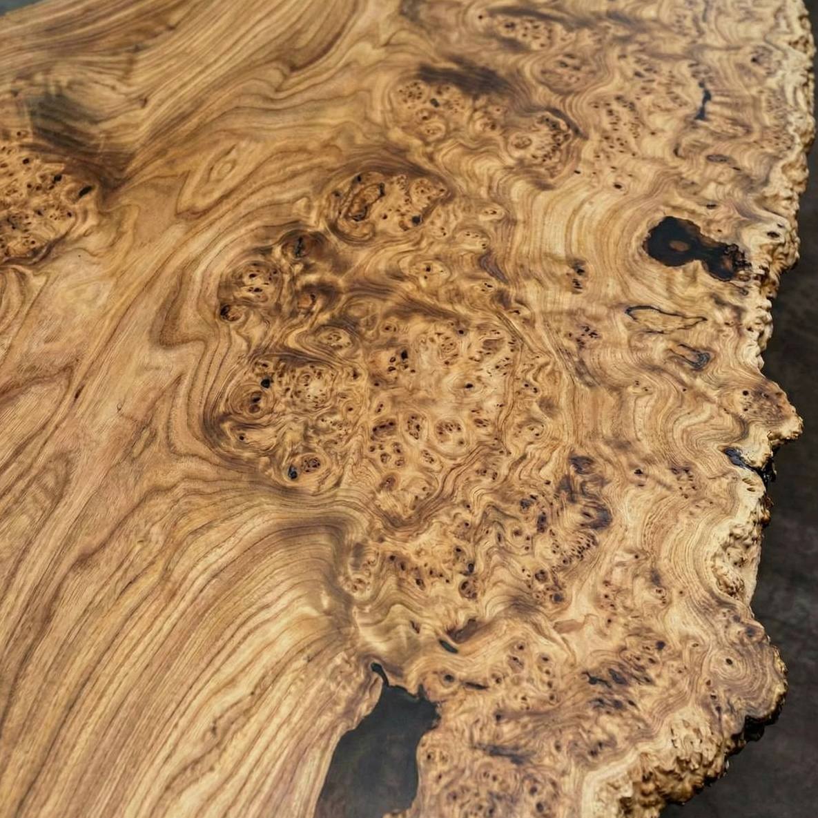 Перед вами не просто стол, а уникальное творение природы, заключенное в благородное дерево. Столешница выполнена из цельного слэба карагача с ярко выраженной каповой текстурой. Это чистый массив, не имеющий аналогов — именно тот случай, когда природа выступила главным дизайнером.
