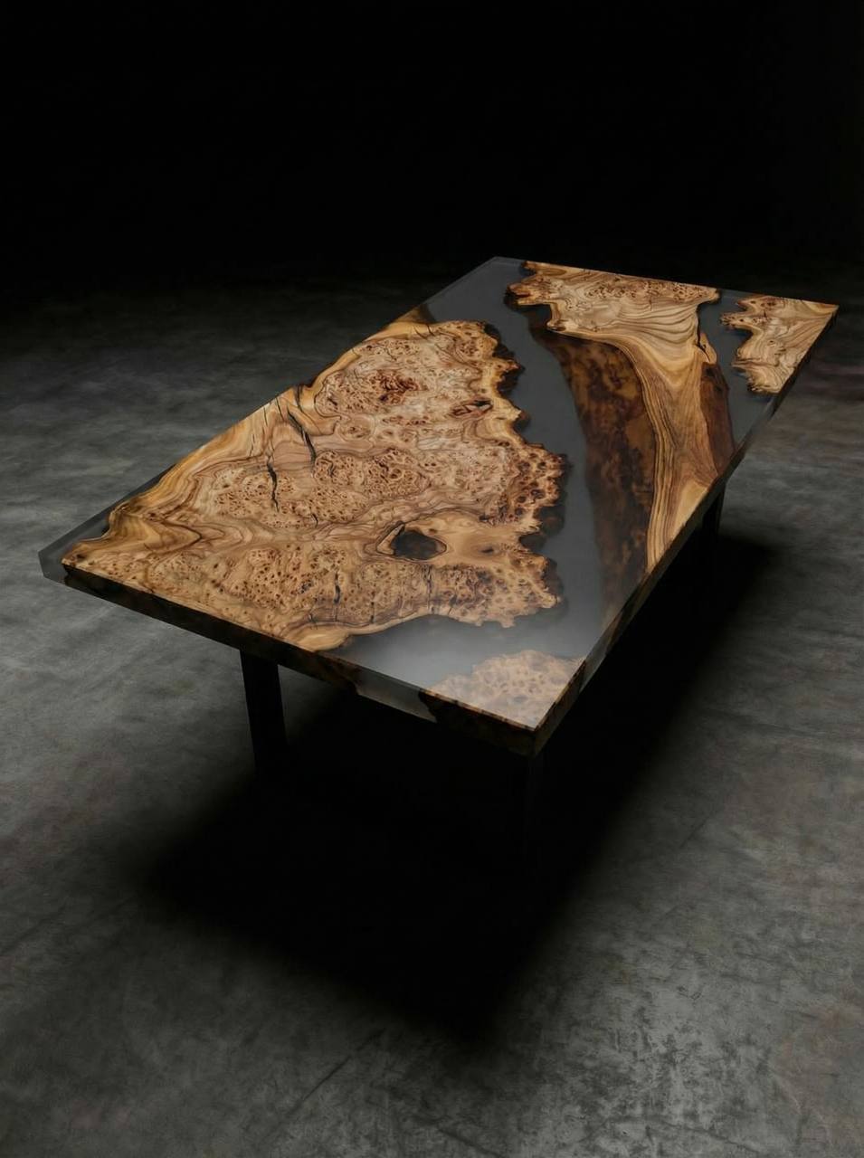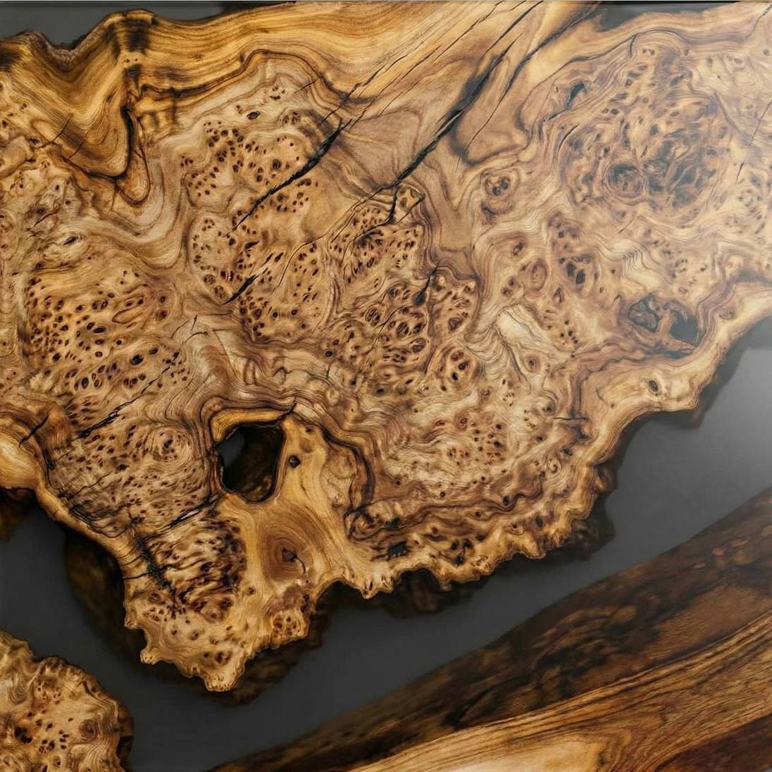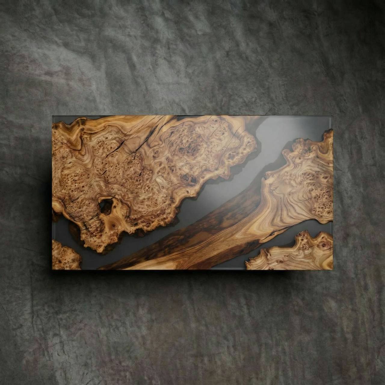 Этот стол — больше, чем просто мебель. Это арт-объект, который станет сердцем вашего интерьера. Натуральный спил векового карагача с его завораживающей слоистой структурой заключен в прочный массив прозрачной смолы с матовой поверхностью. Смола не только защищает дерево, но и придает ему эффект парения, создавая ощущение, будто кусочек древнего леса законсервирован в прозрачном янтаре. Матовая текстура смолы приятна на ощупь и не дает бликов.