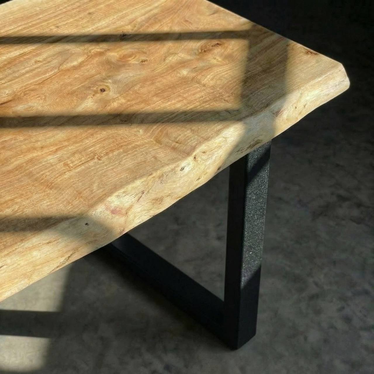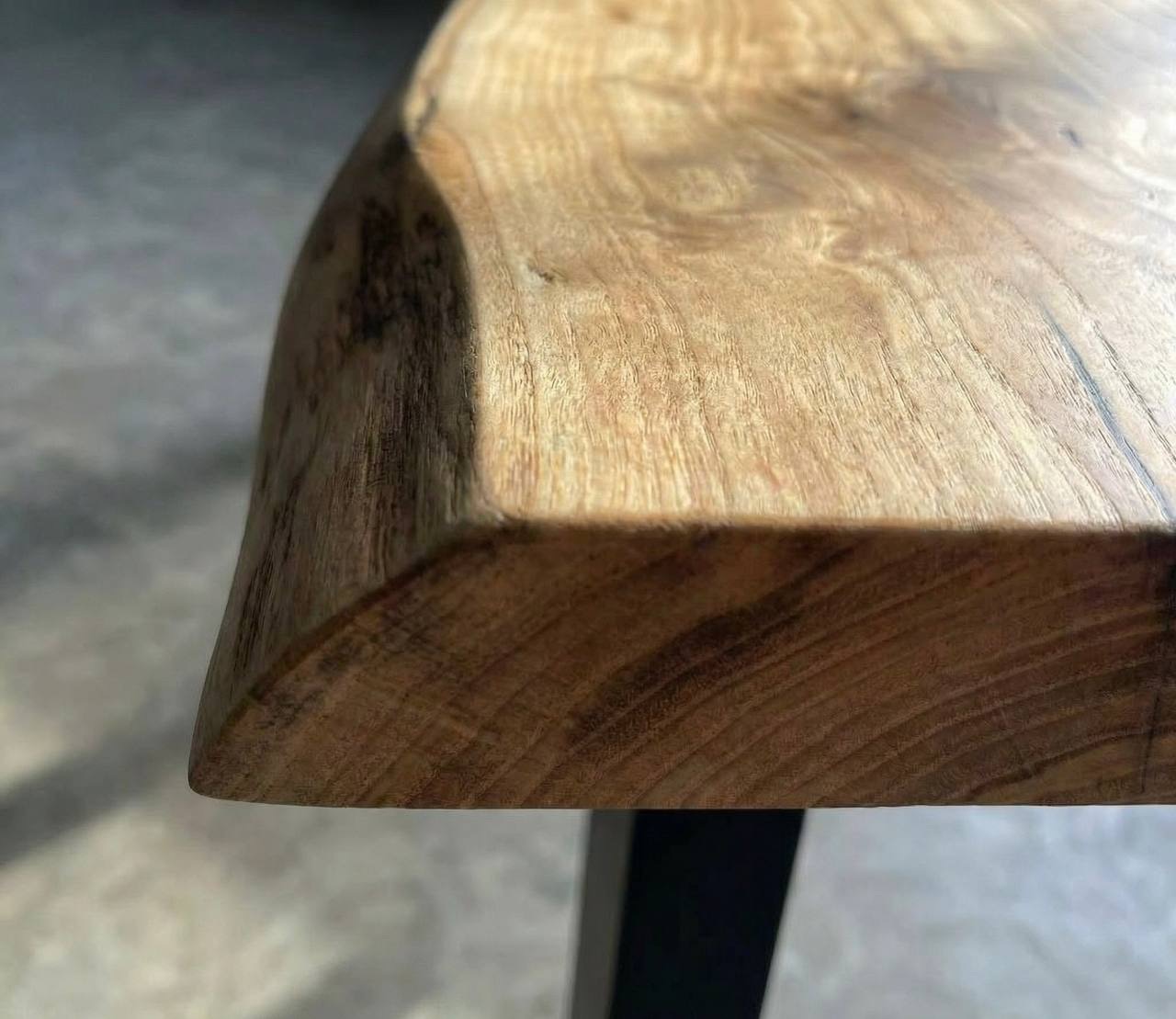 Столешница двухсторонняя: одна сторона немного более светлая, другая сторона покрыта более темным маслом, также можно тонировать еще темнее. Подстолье на ваш выбор.