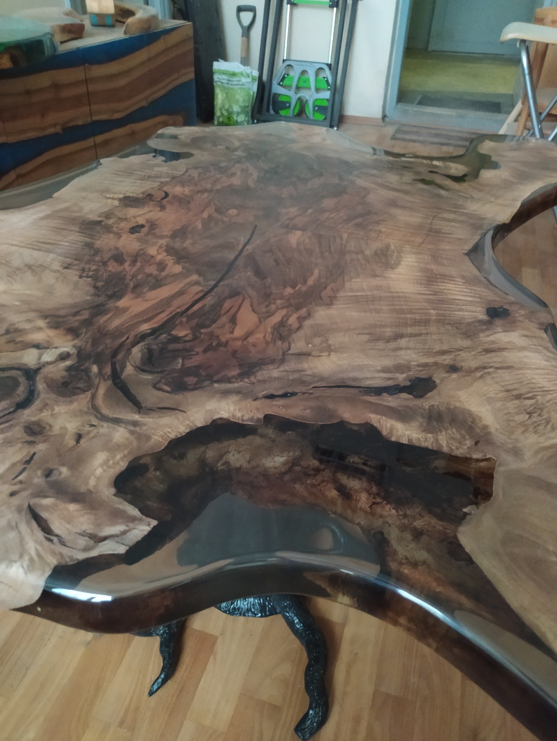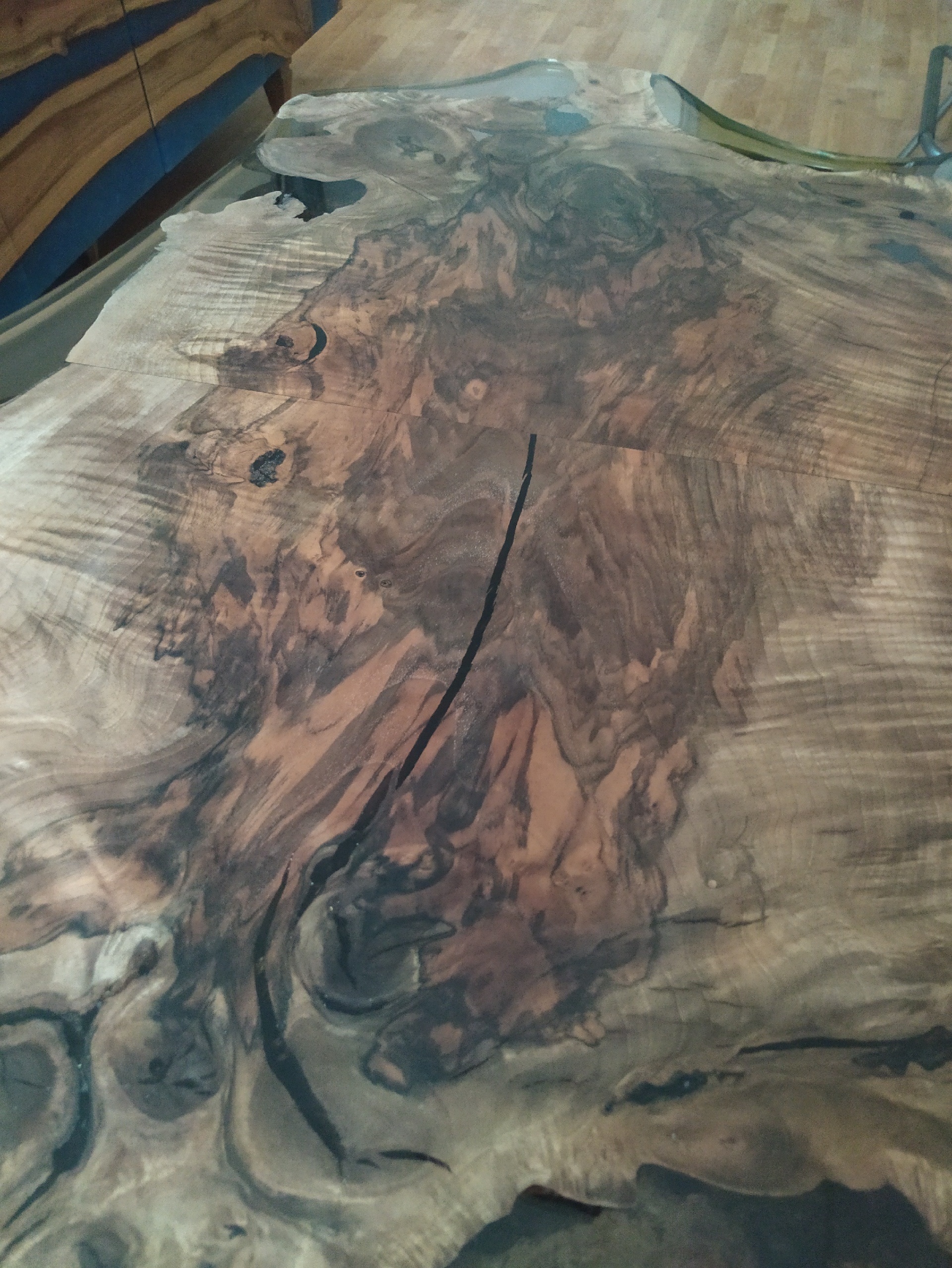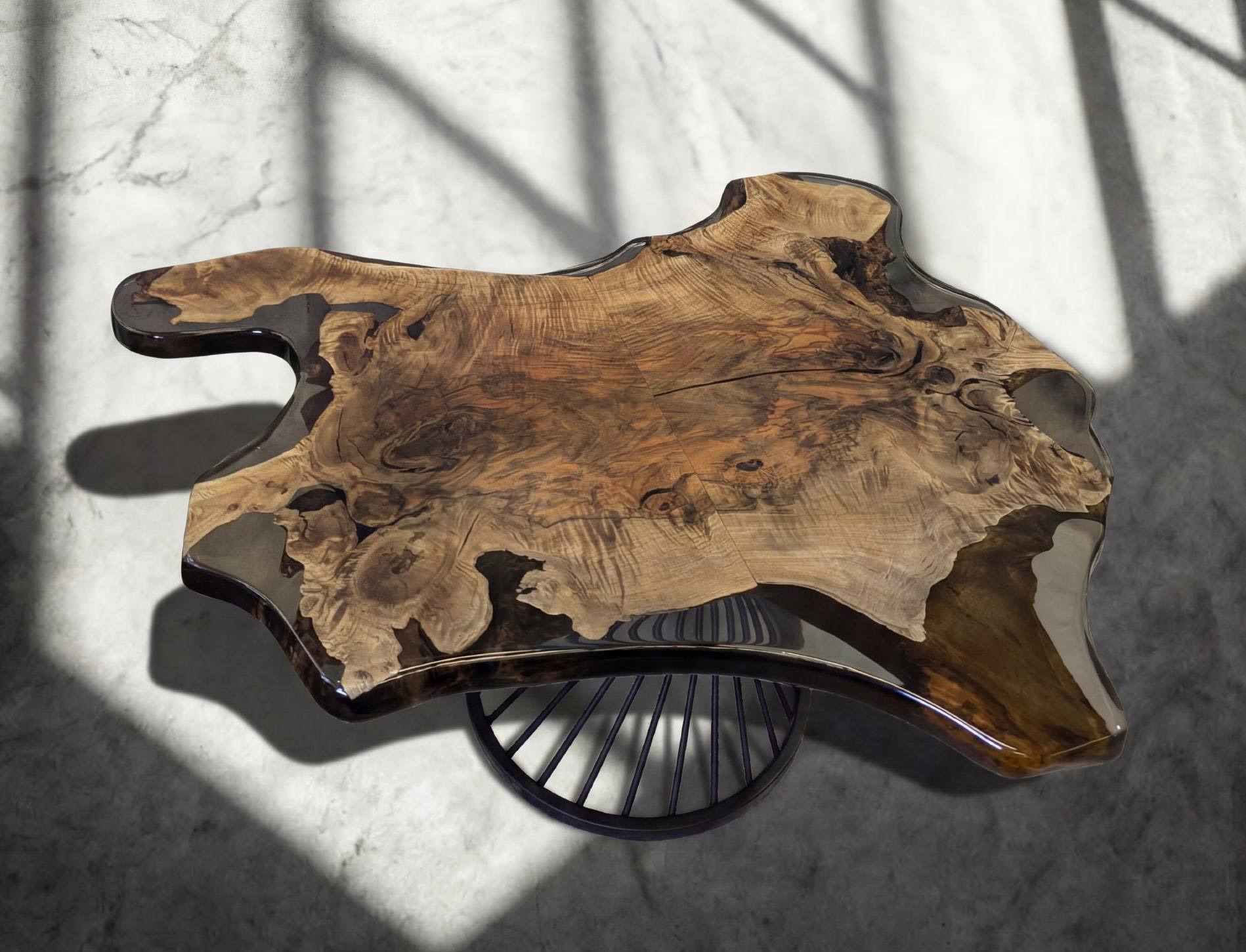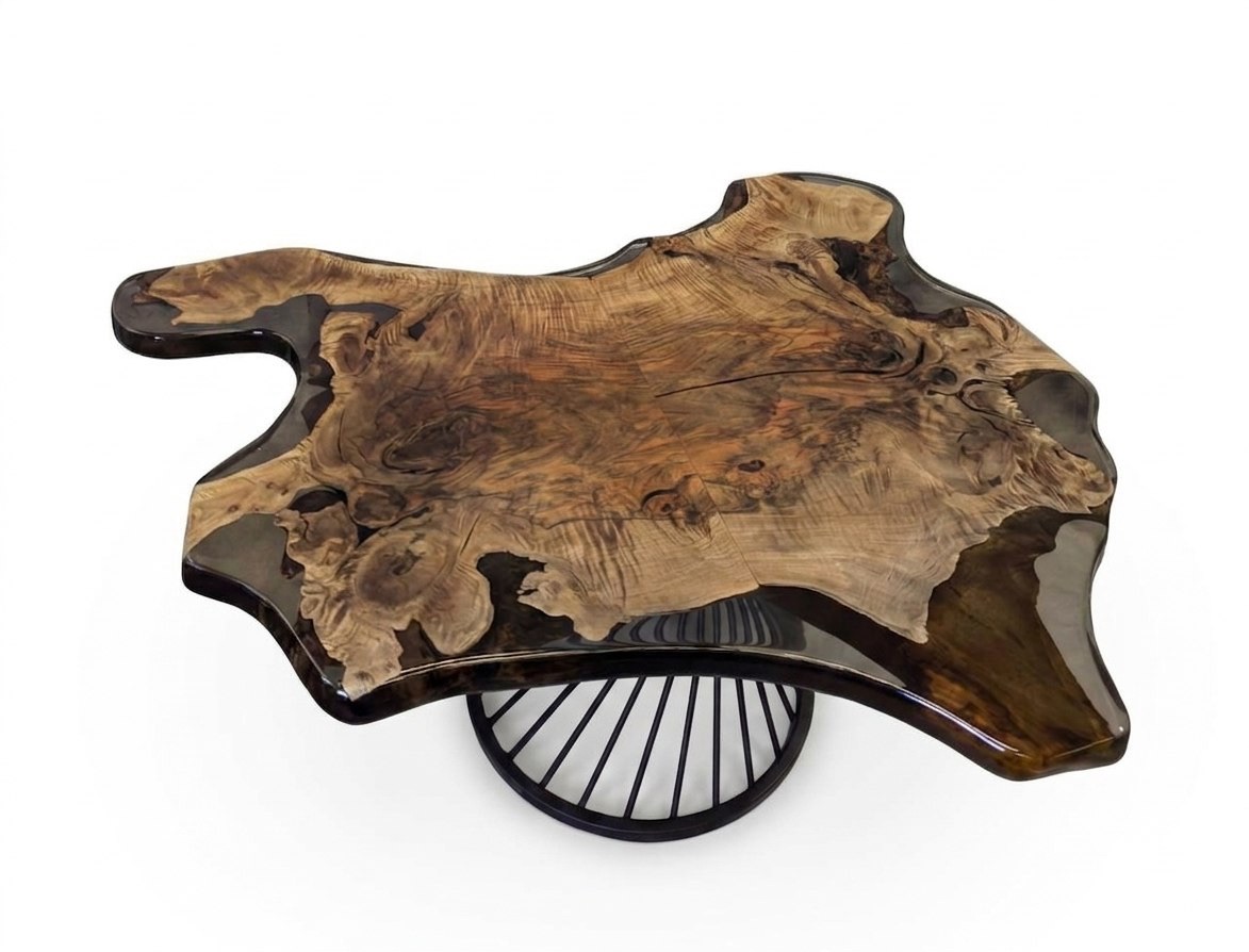 Эксклюзивный журнальный стол из комеля ореха - невероятный рисунок, напоминающий шкуру медведя, также можно узнать по форме лапки, хвостик, потрясающая живопись, автором которой является сама природа 💛