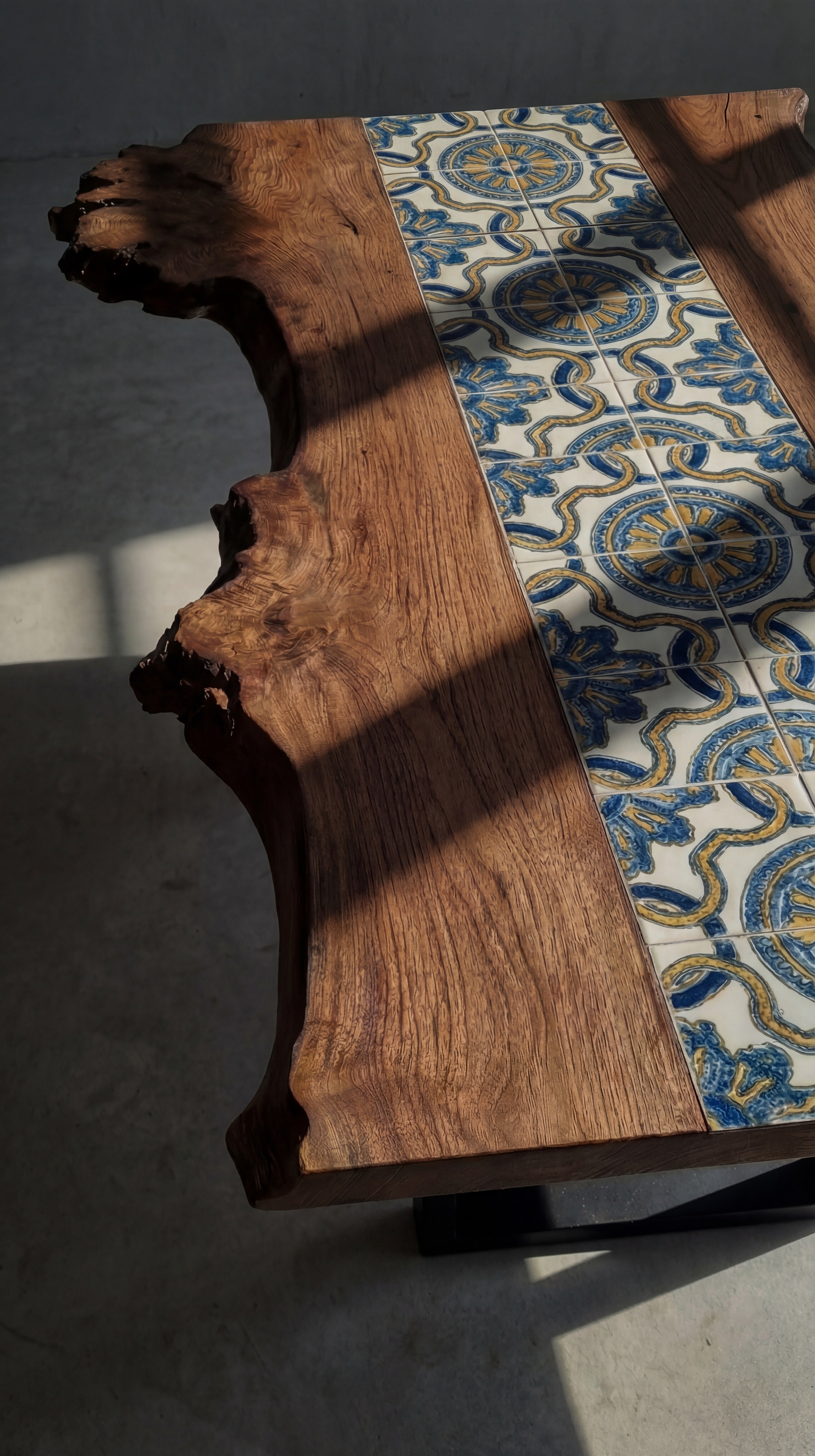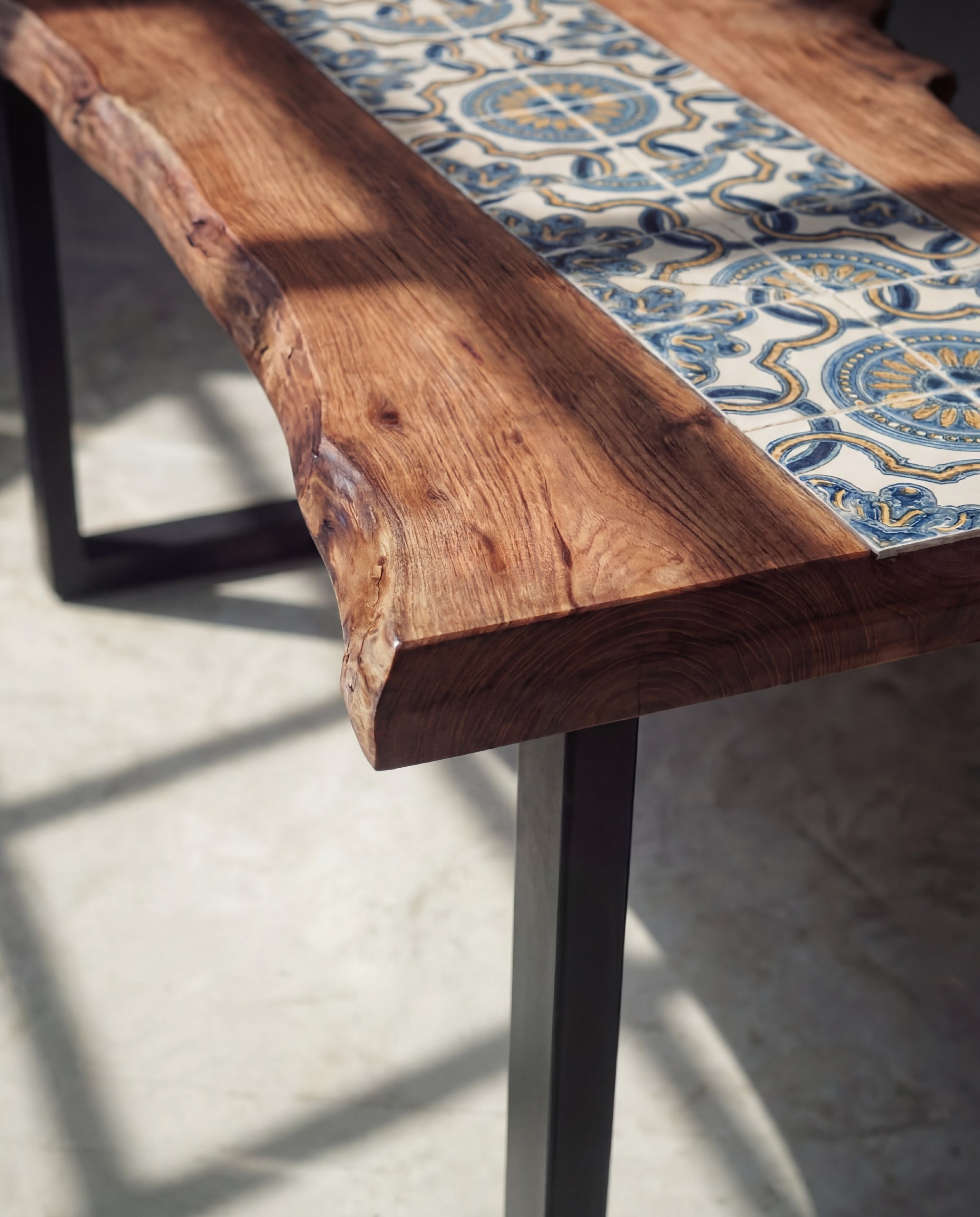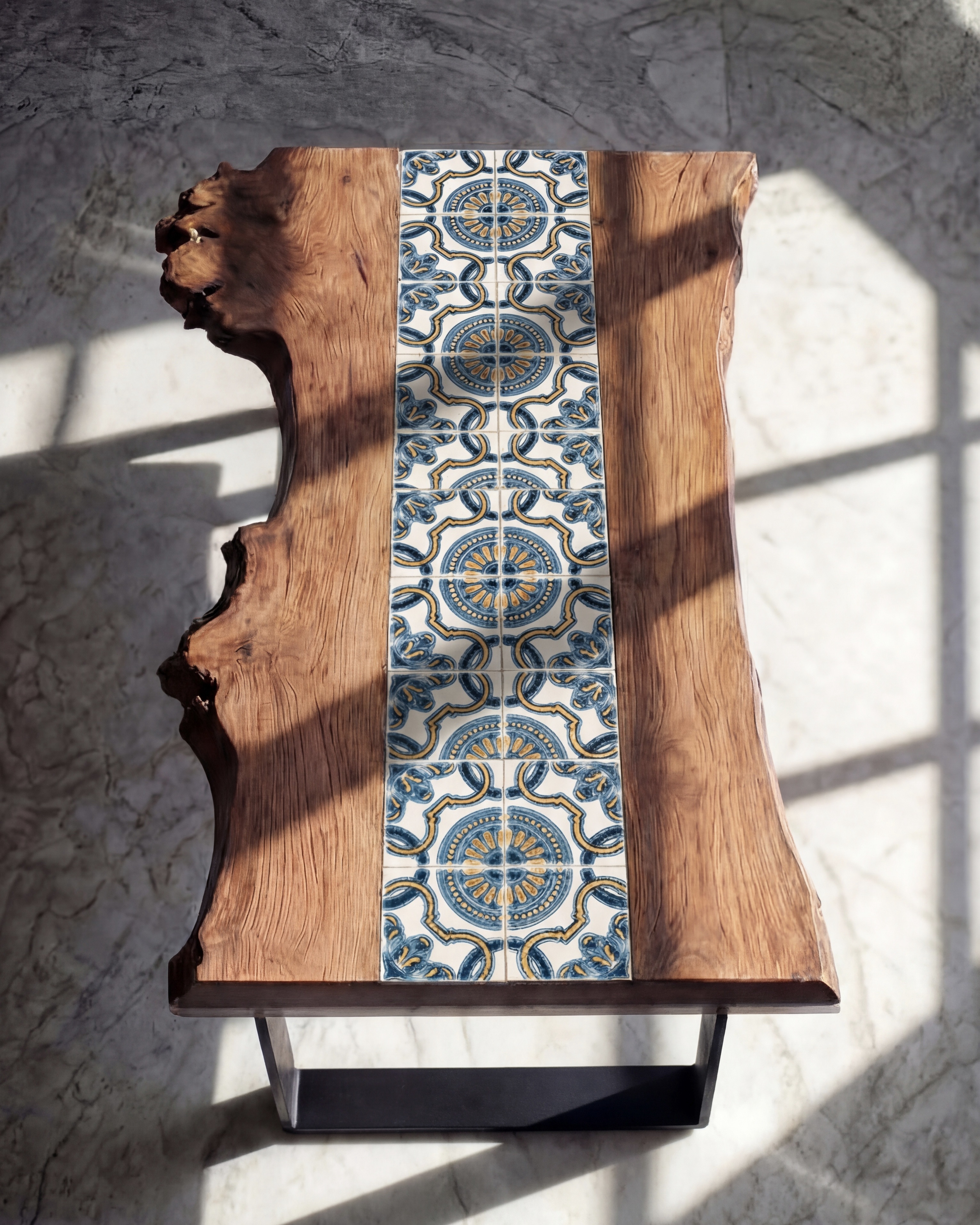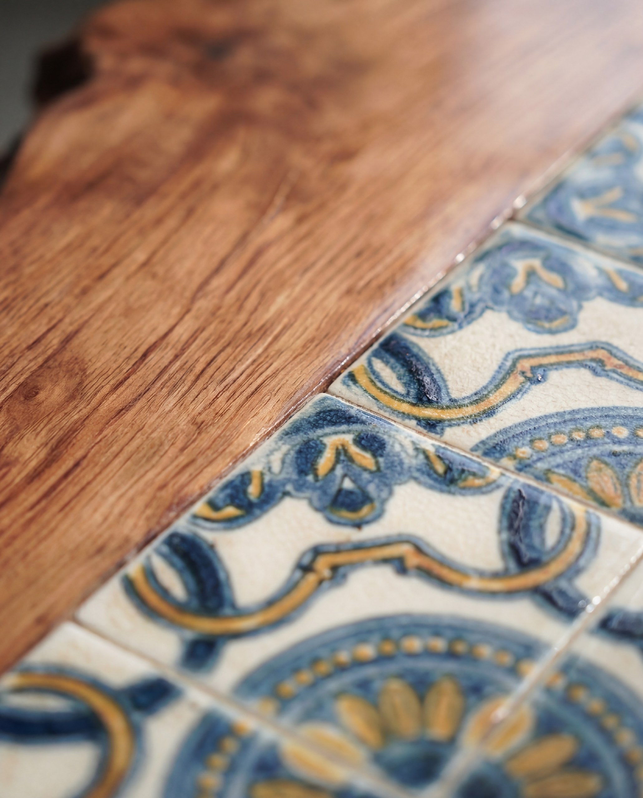 · Материалы: массив карагача (живой край), плитка ручной работы / этническая керамика