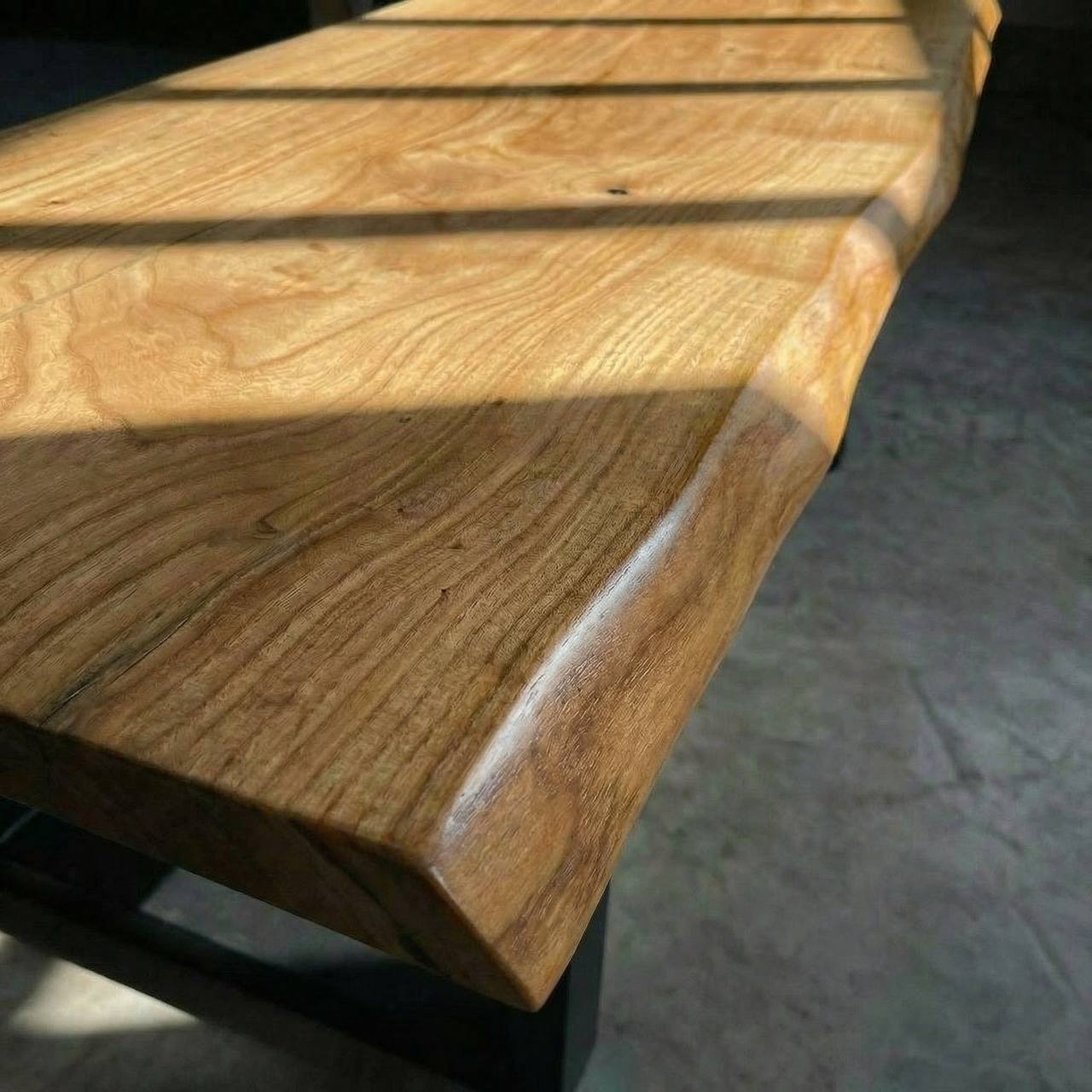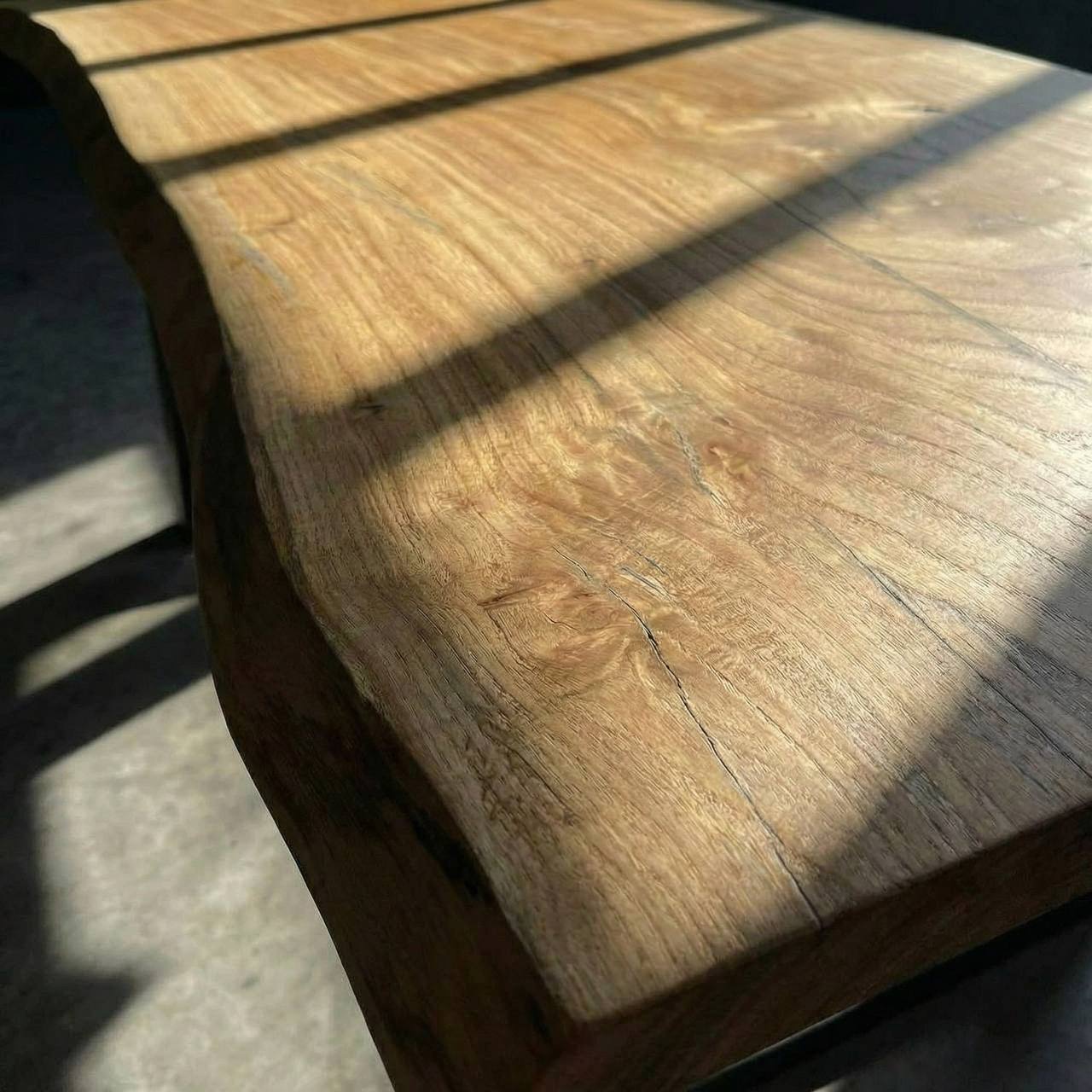 Столешница двухсторонняя: одна сторона немного более светлая, другая сторона покрыта более темным маслом, также можно тонировать еще темнее. Подстолье на ваш выбор.