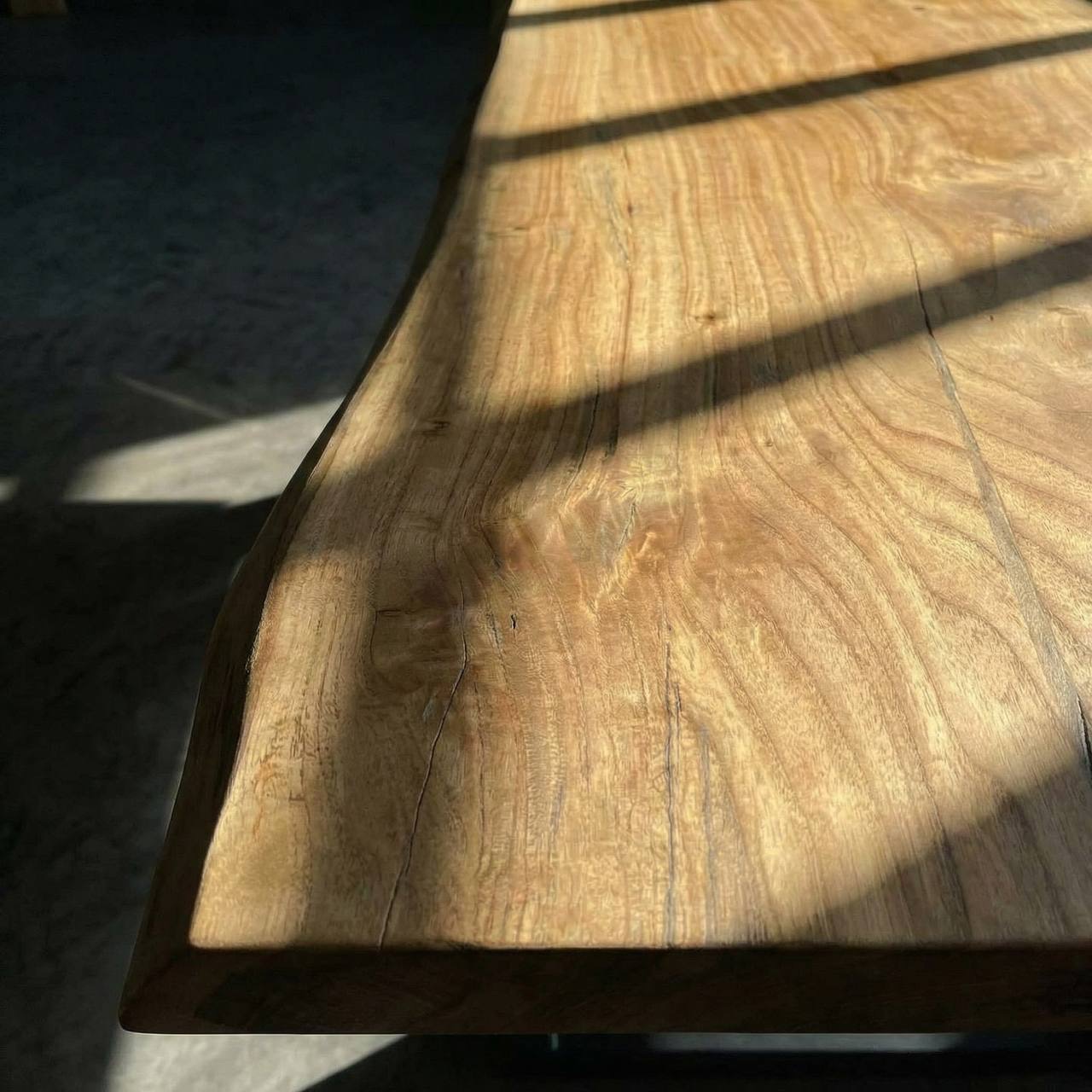 Цельный массивный слэб горного тополя с уникальным рисунком свилеватой структуры: волокна переплетаются в причудливый узор, переливаясь на свету всеми оттенками мёда и золота.