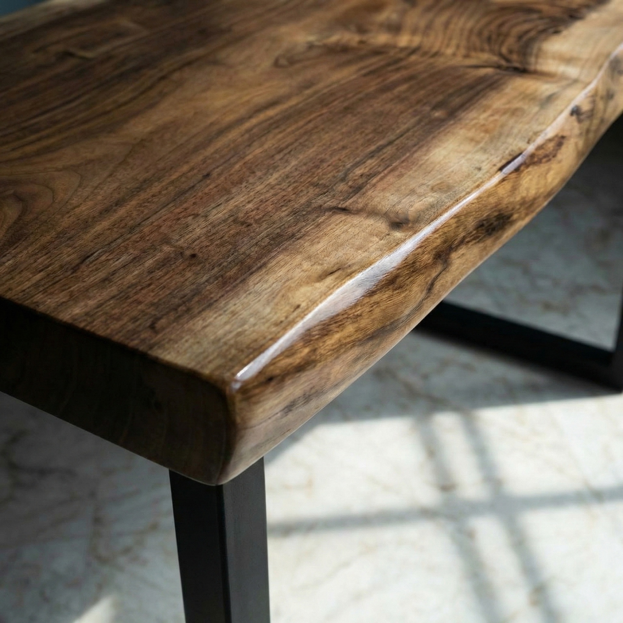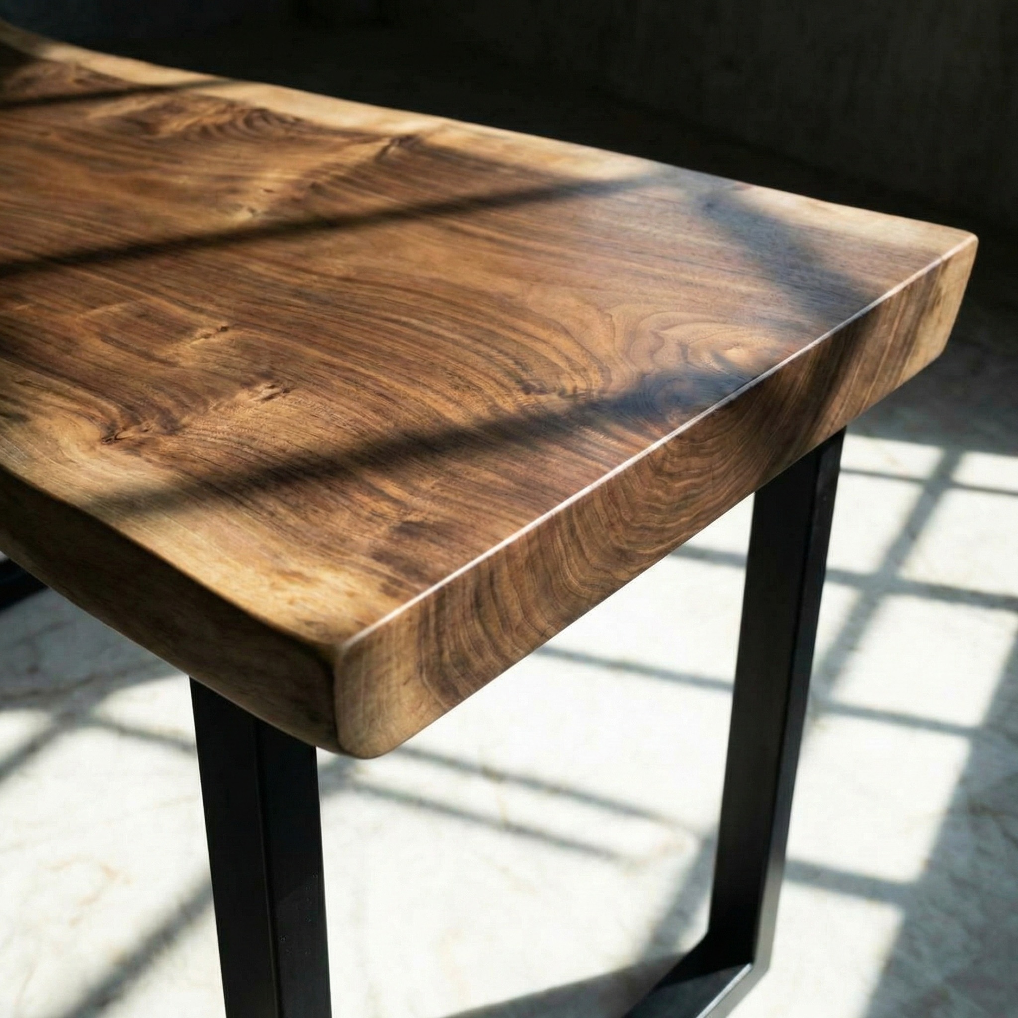Слэб термированного ореха насыщенного коричневого цвета - глубокого, тёплого, с благородными переливами, которые проявляются на свету. Термирование раскрыло структуру древесины, сделав её плотной и графичной, но сохранило природное тепло. Бархатистая матовая поверхность притягивает взгляд.