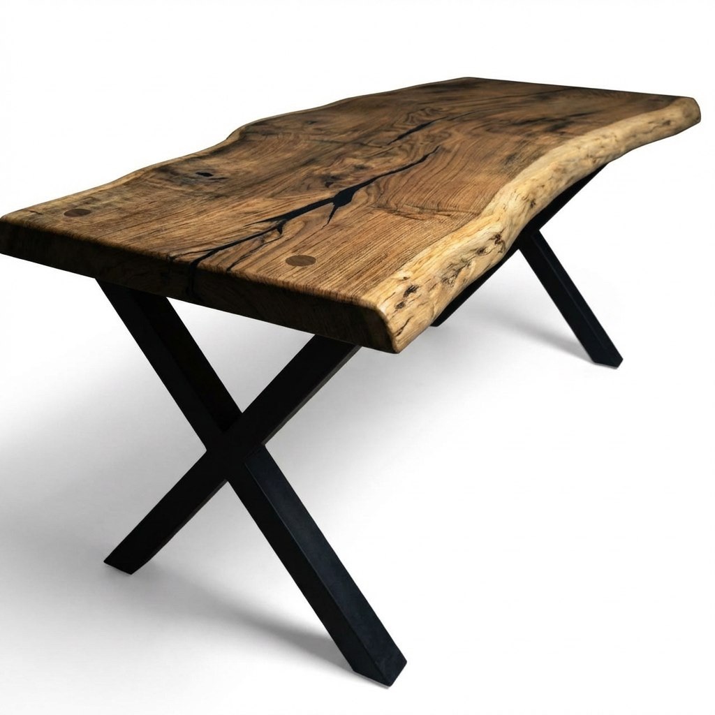 Стол из слэба термомодифицированного дуба — это рабочее место, решённое как персональный арт-объект. Его доминанта — выразительный живой изгиб, с которым массив уходит от формальной геометрии в сторону текучей, почти скульптурной линии. Термомодификация раскрывает дуб в совершенно новом, глубоком тоне — от тёплого табачного до насыщенного шоколадного, проявляя бархатистую плотность волокон и их тактильное благородство. Никакой нарочитой декоративности: спокойный, статусный характер, который превращает ежедневную работу в ритуал со вкусом.