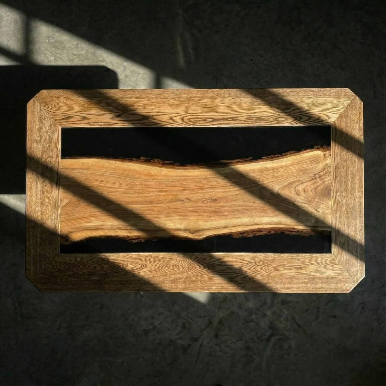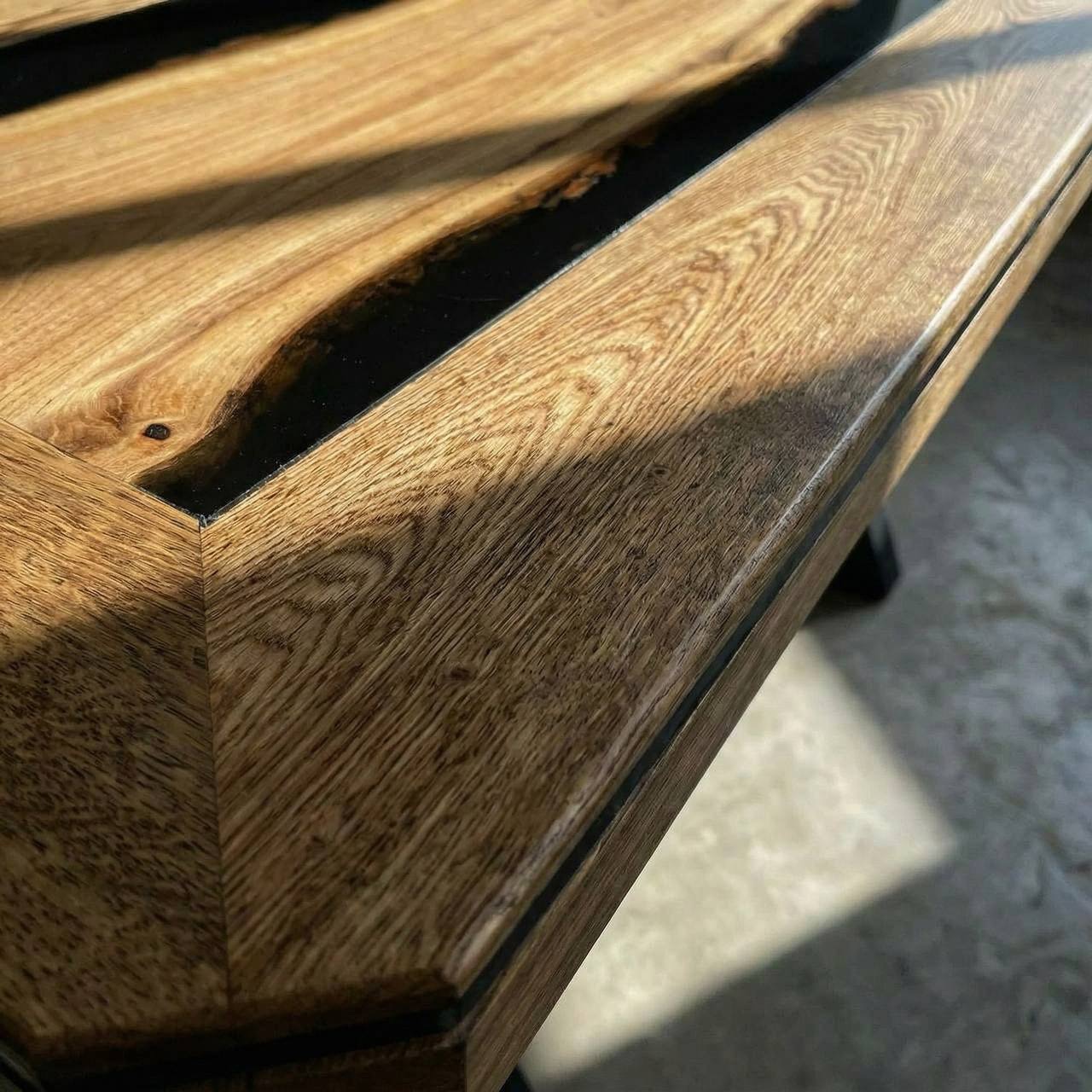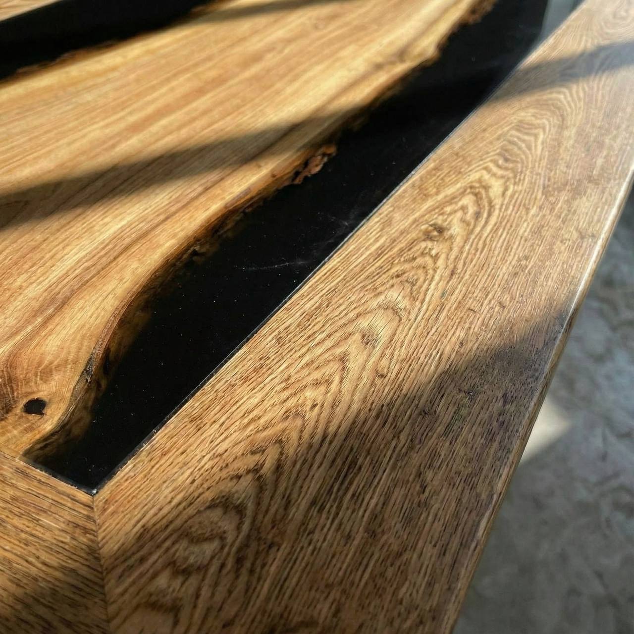 Стол из слэба карагача и эпоксидной смолы, в обрамлении дубовых бортов 🖼️