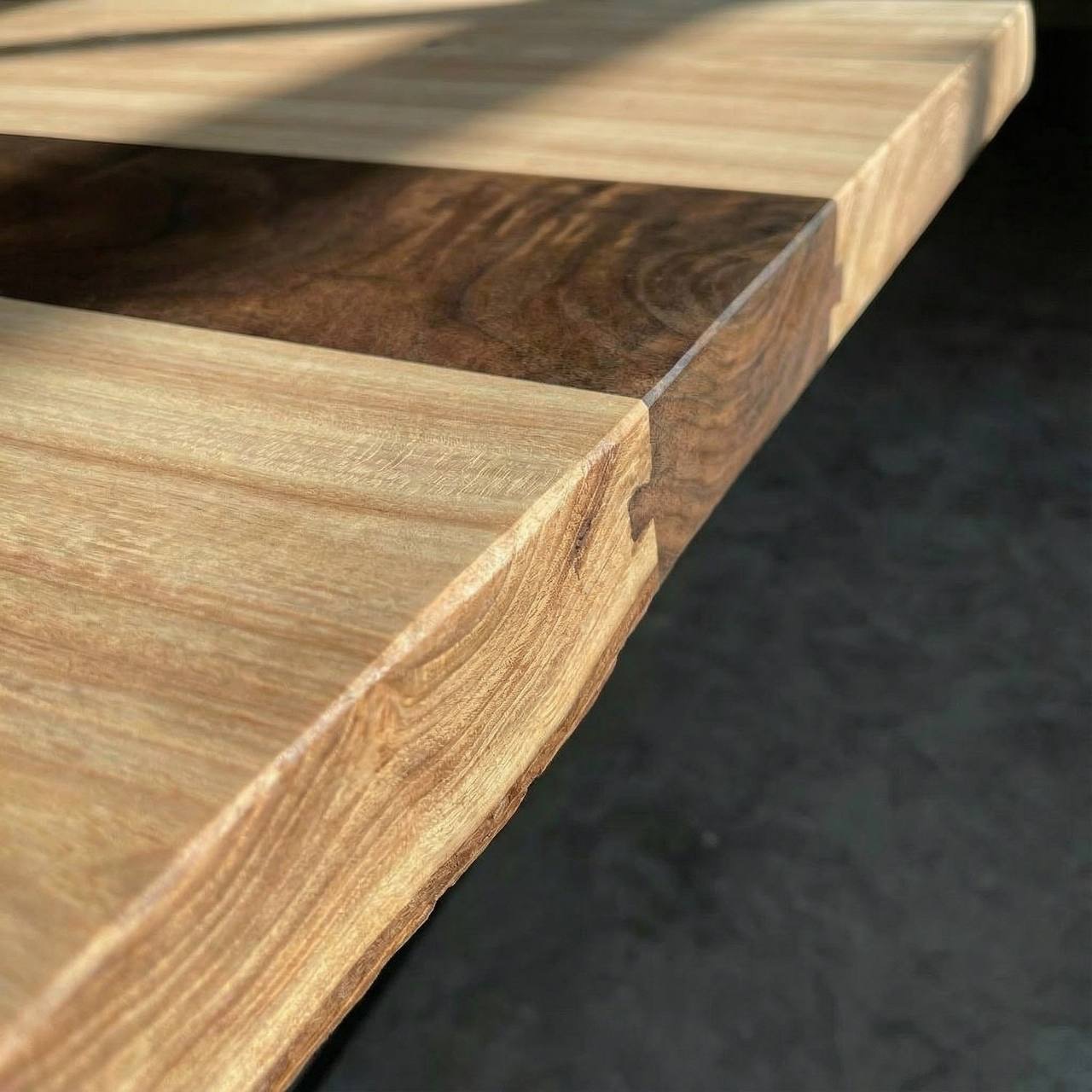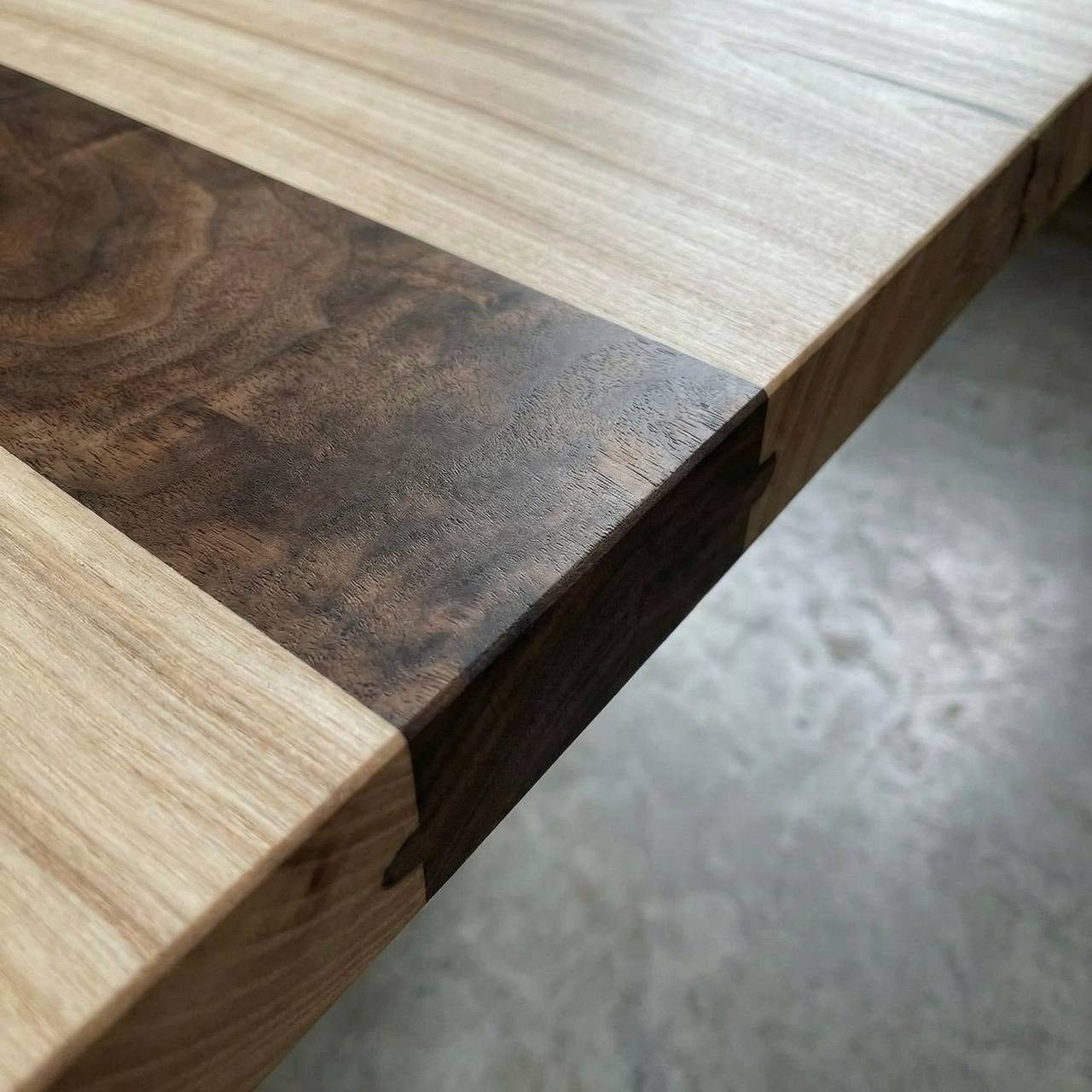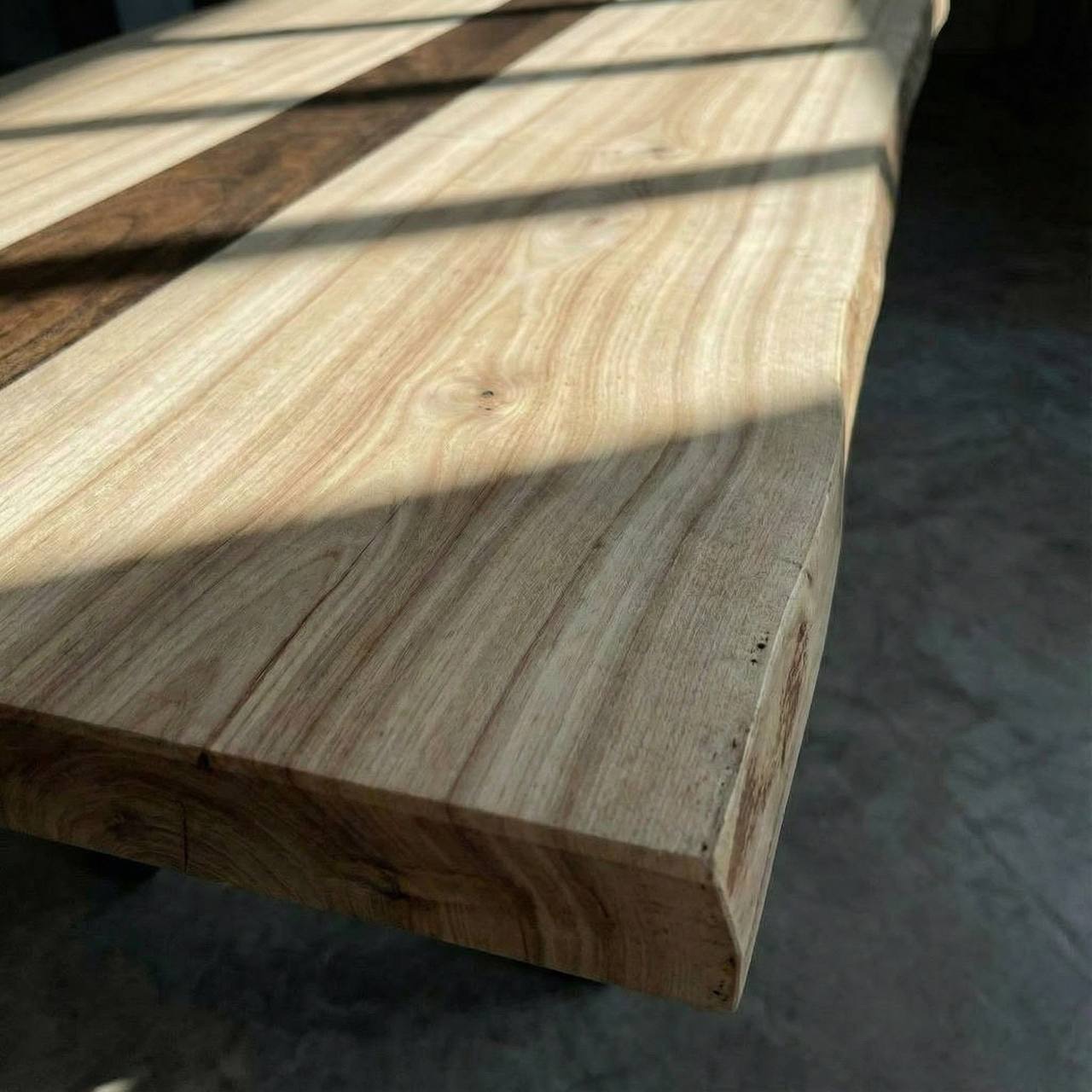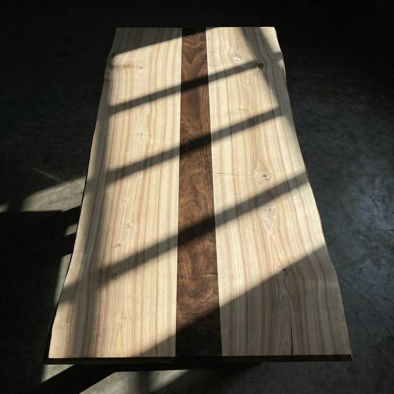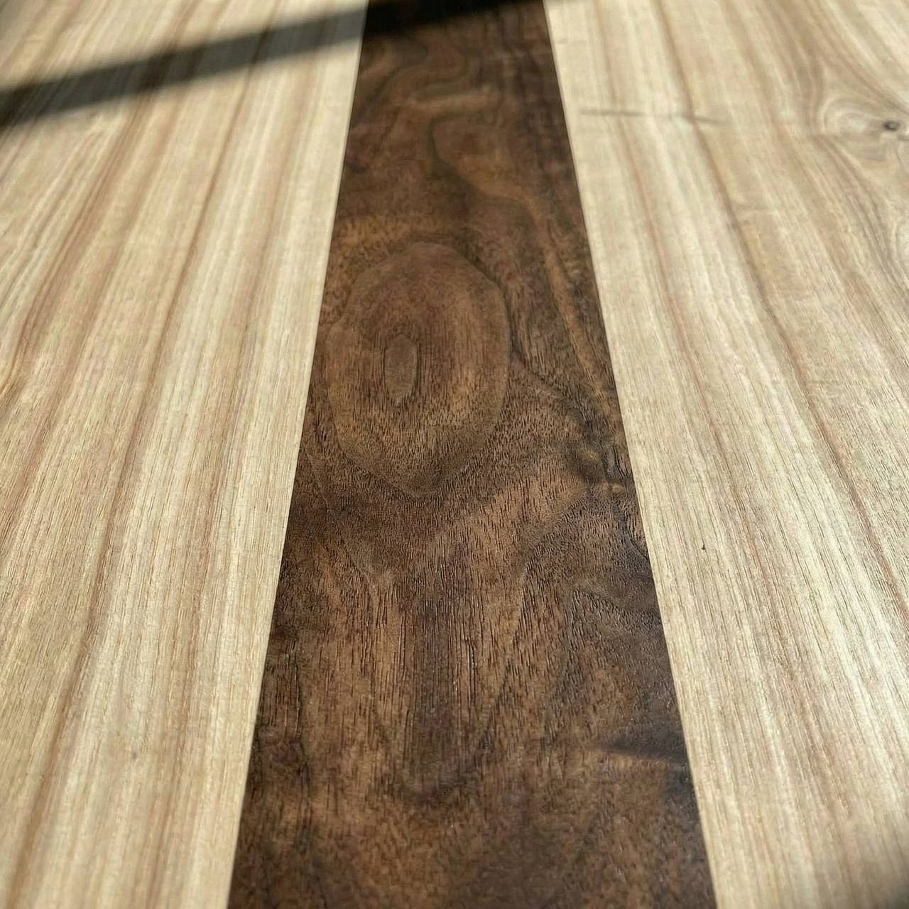 Внутри массива ясеня мы инкрустировали изящную полосу из ореха, получился уникальный арт-объект, центр притяжения в интерьере 😍