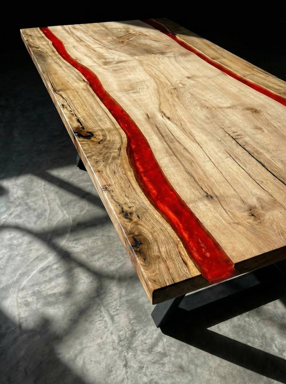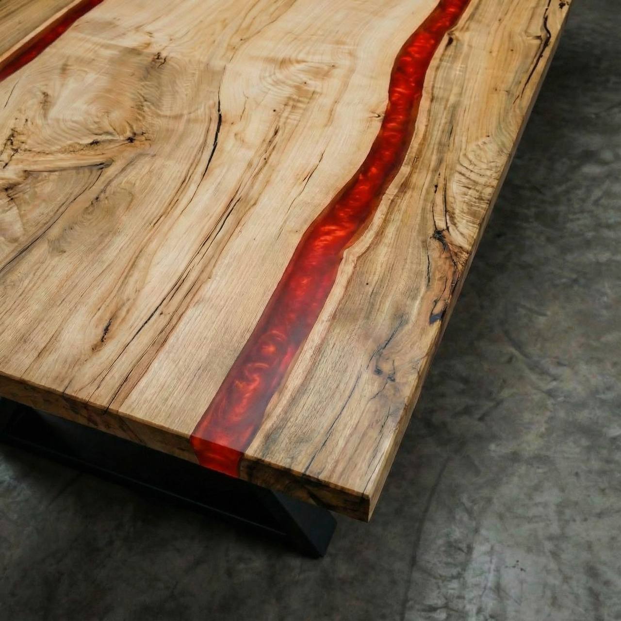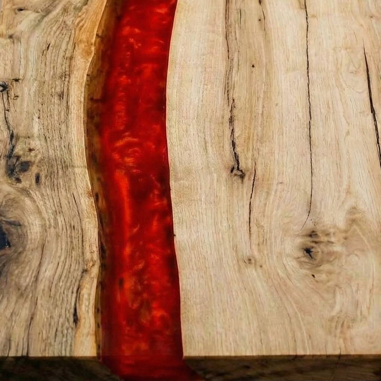Главный герой вашей гостиной! Натуральный слэб дерева по краям сменяется двумя полосами красной эпоксидной смолы, которые обрамляют нетронутый центр стола из чистого массива. Уникальное сочетание брутальной природной фактуры по бокам, яркого акцента в виде смолы и спокойной древесины в середине. Каждый экземпляр неповторим!
