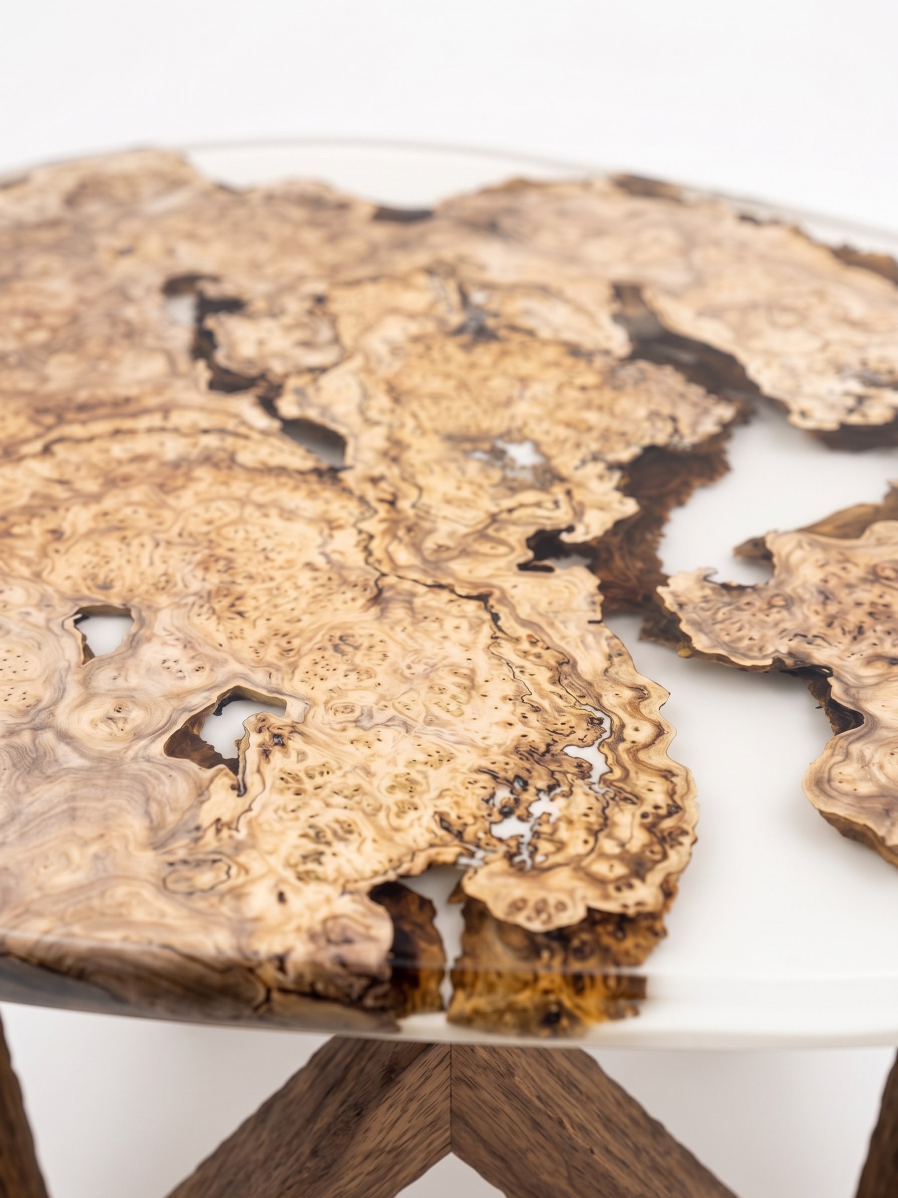 · Материал: Кап карагача (уникальный рисунок у каждого экземпляра), эпоксидная смола молочного цвета.